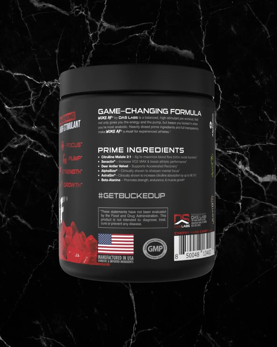 This powerful trio of energy-boosting compounds, including 333mg of caffeine, Synephrine, and Dendrobium, ensures you'll feel wide awake and focused. Wondering about the difference between WOKE AF and BAMF? While both contain the same core ingredients, WOKE AF features Dendrobium and Synephrine as stimulants, setting it apart. Loaded with essential nutrients like Citrulline, Deer Antler Velvet Extract, and more, WOKE AF supercharges your workouts for optimal performance. Boost your exercise regimen with WOKE AF today!