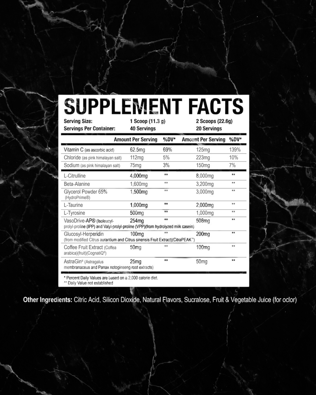HYDRAULIC V2 HAS HIGHER DOSES OF L-CITRULLINE AND BETA-ALANINE, IT ALSO FEATURES SEVERAL NEW TRADEMARKED INGREDIENTS INCLUDING VASODRIVE-AP®, CITRAPEAK®, HYDROPRIME®, COGNATIQ®, AND ASTRAGIN®.