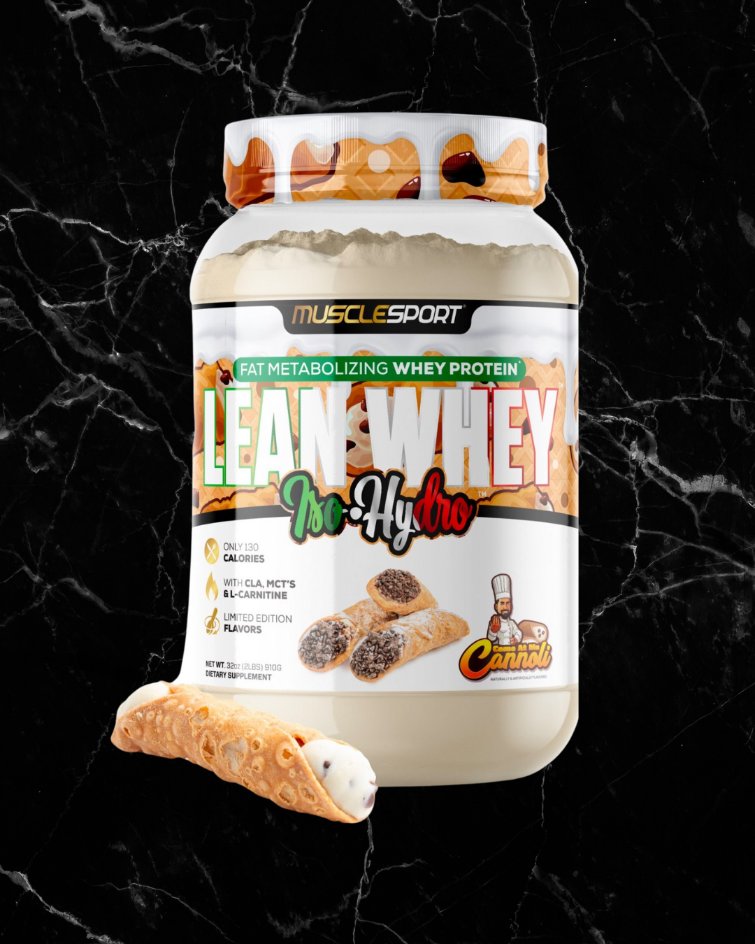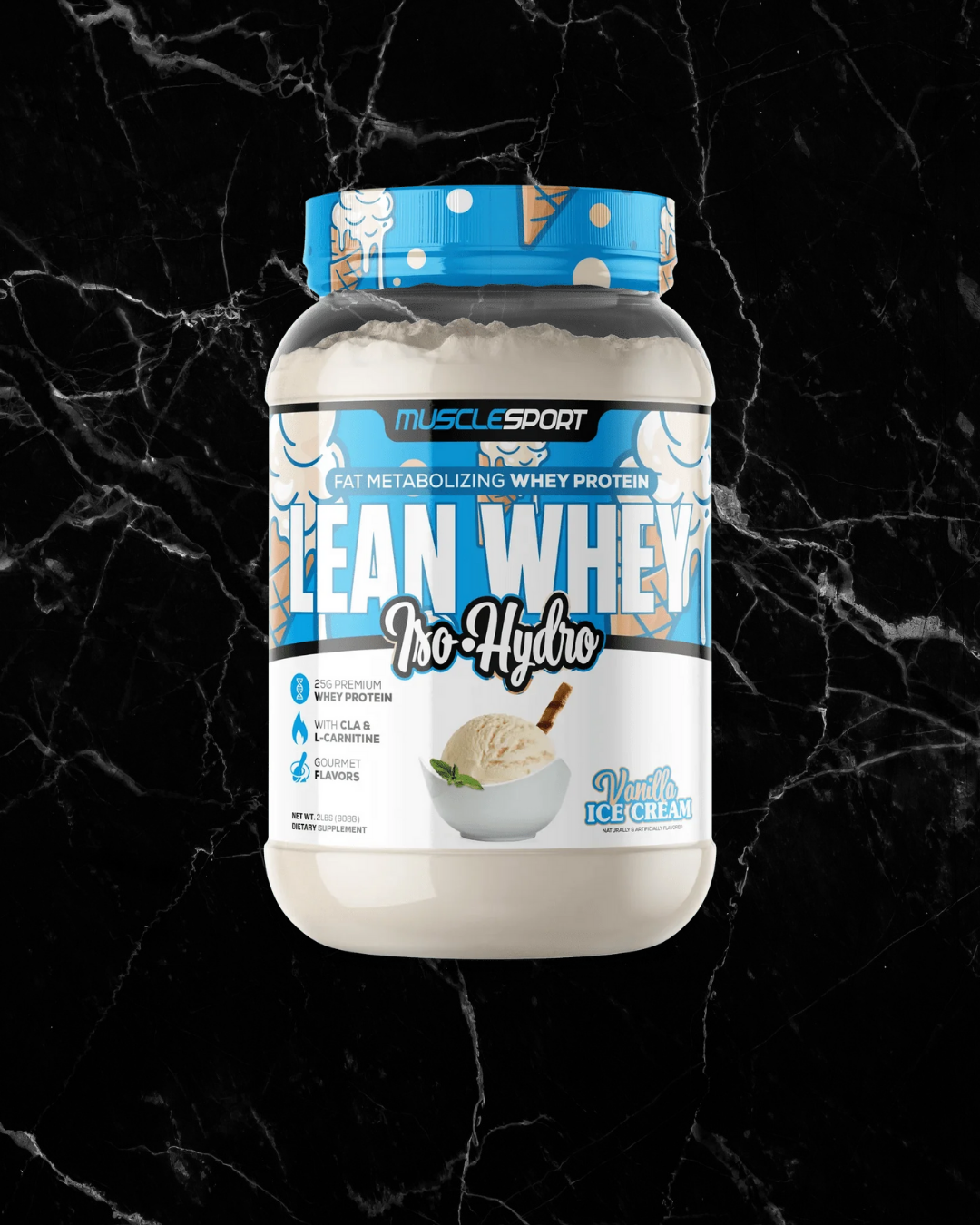 MuscleSport's™ Lean Whey™ Iso Hydro is a premium protein supplement formulated by the Supp Chef™ who is the worldwide leader in gourmet flavored protein options. Lean Whey™ Iso Hydro boasts the highest quality and most easily digestible protein sources available. Lean Whey™ separates itself from the competition by utilizing a Fat Metabolizing Matrix. A Blend of Fibersol™ Fiber, L-Carnitine, CLA (conjugated linoleic acid) and MCT's, synergistically working together in optimizing your body's fat metabolism.*