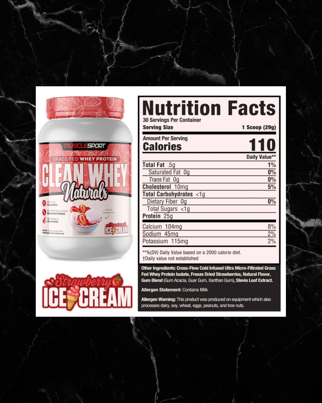 Introducing Clean Whey™ from Musclesport® Lean Whey® from MuscleSport is the leader in the Protein Flavor game for a reason – Amazing Flavor Systems developed by the Supp Chef® with Real Food Inclusions to provide the ultimate flavor experience with none of the guilt. Now, we’re Changing the Game Again with Clean Whey™. What is Clean Whey™? Clean Whey is a Natural Grass Fed Whey Isolate designed to help be a delicious, all-natural Whey Protein Isolate that delivers big on taste. Although it’s free of Artificial Sweeteners, Colors, Dyes and Flavors, Clean Whey™ was meticulously crafted and flavored by the Supp Chef® and even includes All Natural Inclusions to provide you with a truly premium flavor experience. Each Serving Contains 25 grams of High Quality, Grass Fed Whey Protein Isolate to help you recover after training and help you reach your fitness goals while supporting a lean and active lifestyle