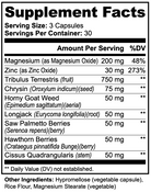 Support Men's Vitality and Wellness: Our carefully crafted dietary supplement is designed to promote men's health and well-being without containing testosterone. Formulated with a blend of key nutrients including magnesium, zinc, tribulus terrestris, chysin, horny goat weed, longjack, saw palmetto berries, hawthorn berries, and cissus quadrangularis, our product supports various aspects of men's health. *