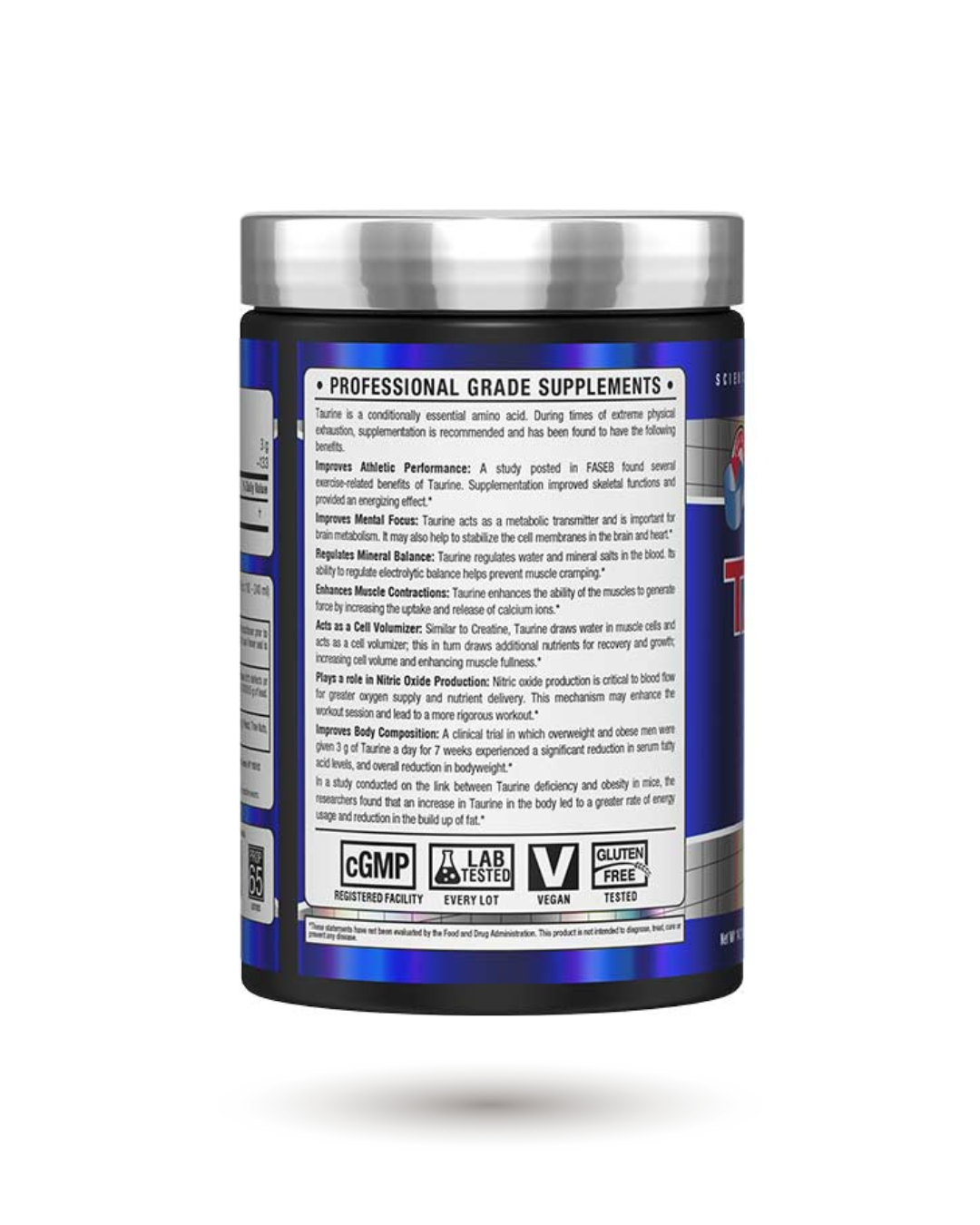 ALLMAX Essentials Taurine is a pure, free flowing, flavorless, unsweetened white crystalline powder that mixes easily, allowing you to add it to anything you like. Similar to Glutamine, it can also be considered a conditionally essential amino acid during times of intense physical training when the body may require additional Taurine due to increased physical demand.