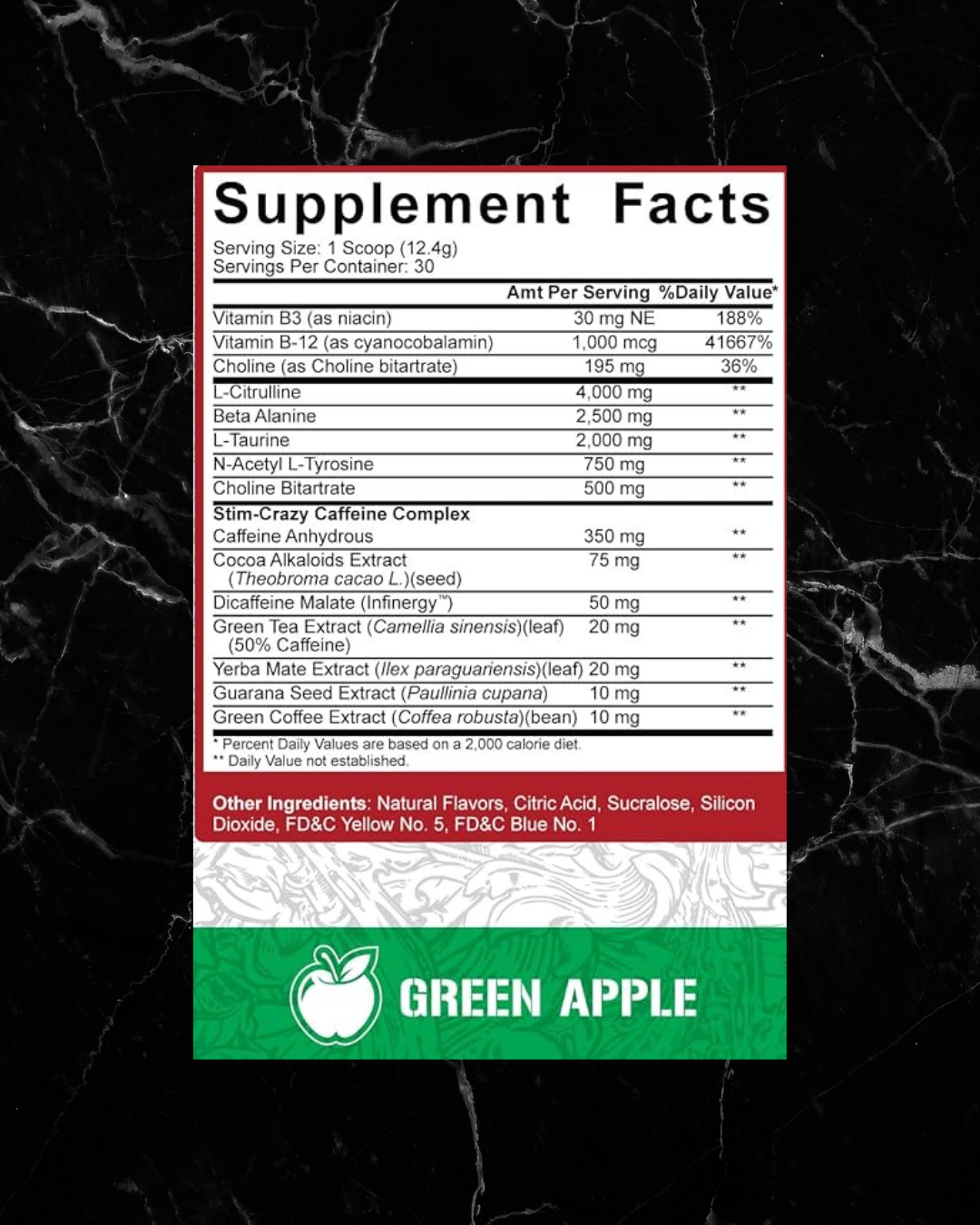 5% Nutrition - 5150 - Pre Workout: 5150 is a one-of-a-kind pre-workout blend that will give you insane energy, extreme pumps and vascularity, razor-sharp focus, intense motivation, and extended endurance. This high stimulant powder contains a no-crash caffeine complex that delivers 400 mg of caffeine derived from 8 sources, including time-released Di-Caffeine Malate. Increase your endurance and recovery between sets with over 3 grams of Beta-Alanine, which helps block lactic acid buildup before it can start. Power through every workout with 5% Nutrition 5150.