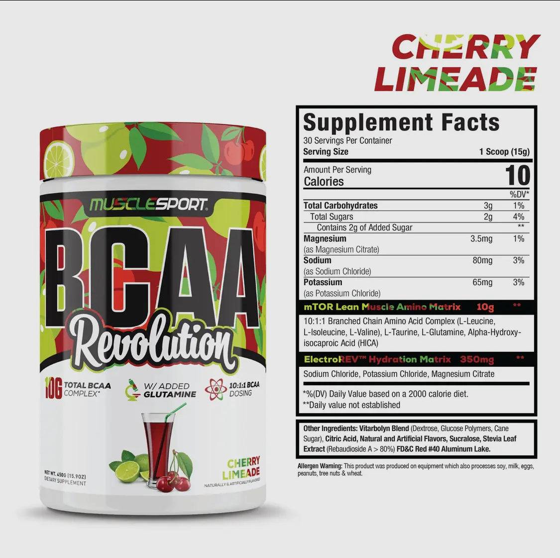 MuscleSport BCAA Revolution - is the INTRA-WORKOUT COMPLEX fuel we need for seamless workouts. With a remarkable 10:1:1 Instantized Branch Chain Amino Acid Complex, a ratio ideal for a jolt during and post workout, it includes HICA-DL Glutamine for muscle immunity and strength. The ElectroREV™ trademarked Electrolyte matrix hydration delivers essential salts throughout our sessions. And that’s not all, it’s an all-day affair with captivating flavours. Let's dive into a champion's drink together!