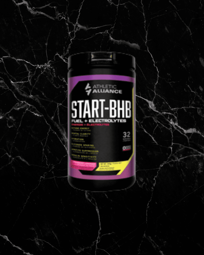 Achieve full ketosis and enhance your performance with Athletic Alliance Start-BHB in delicious strawberry lemonade flavor. This powerful supplement provides exogenous ketones that boost energy, improve cognitive function, and support endurance and strength training. Electrolytes aid in hydration, while MCT powder enhances metabolic rate and energy levels. Whether you're keto dieting or looking for a cognitive boost, Start-BHB has you covered. Go into full ketosis instantly, maintain muscle glycogen, and enjoy flexible dieting options. Perfect for both anaerobic work and endurance events, this supplement helps you lift heavier, last longer, and build lean tissue. Embrace the benefits of ketosis with Athletic Alliance Start-BHB - Strawberry Lemonade.