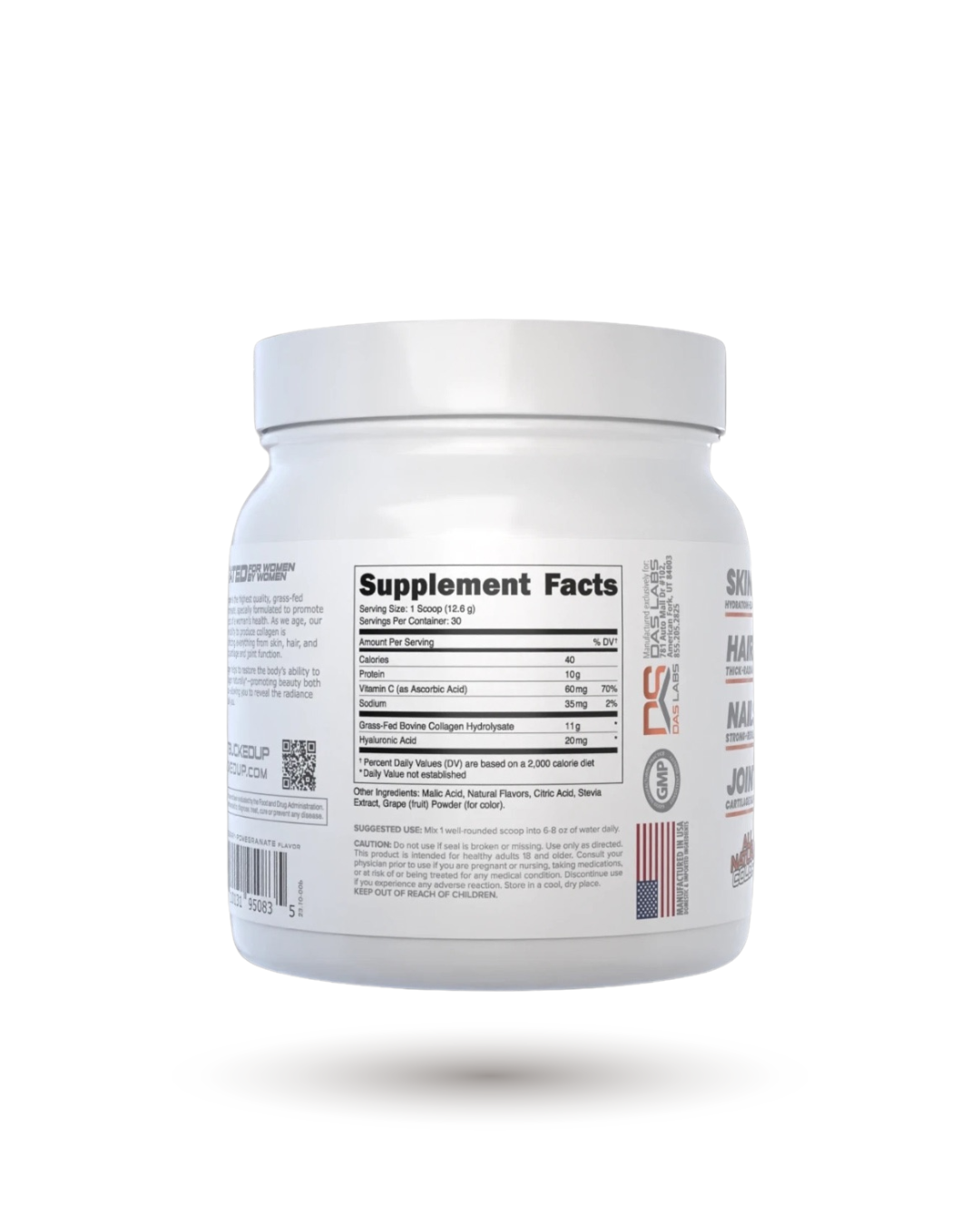Discover the beauty benefits of Babe Collagen in a delightful blueberry pomegranate flavor. This collagen powder supports hair, skin, and nail health, helping you glow from within. Enriched with vitamin C for enhanced absorption, it also aids in joint and muscle strength. Made from 100% grass-fed sources, it's free from hormones, antibiotics, and artificial additives. Mix it into your favorite beverages for a tasty and nutritious boost.