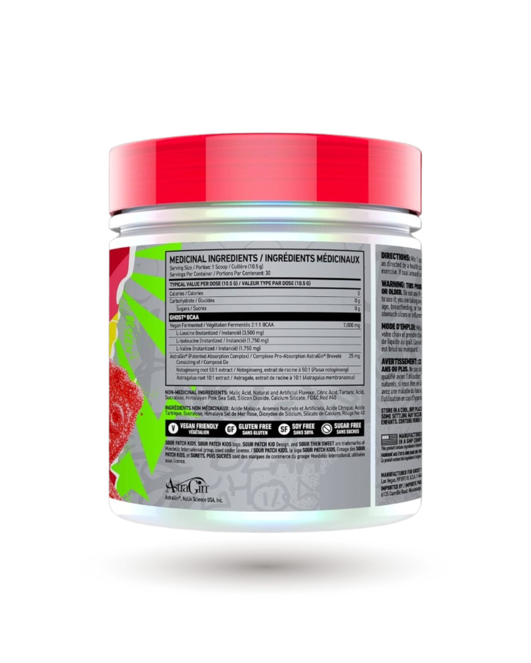 - BCAAs and Epic Flavors: GHOST BCAAs and SOUR PATCH KIDS Watermelon flavor…what’s not to love? Enjoy your favorite sour candy flavor during your workout, throughout the day, or before a night out. 30 servings per container.